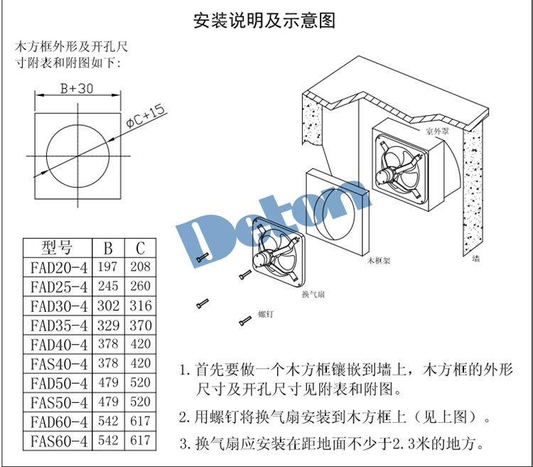 換氣扇用作房屋換氣應安裝在距離地面不少于2.3米的地方。