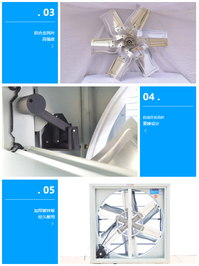 ● 負壓風機具有投資成本低,風量大,噪音低,耗能小,運行平穩,壽命長,效率高等特點,百葉窗自動開合達到防塵,防雨,美觀大方;既可吹風,也可抽風,是現代化車間降溫通風的最佳選擇。環保、節能的負壓風機將成通風降溫設備市場主流。